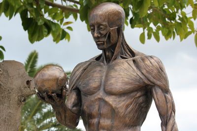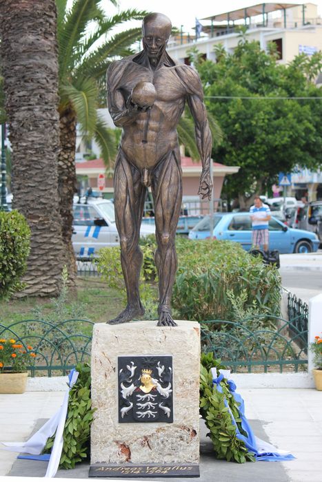 In 2014 the Vesalius Continuum Meeting with the Zakynthos government helped unveil a bronze statue to honor Andreas Vesalius. The statue reminds us of the "philosopher" of Jan Stephan Van Calcar, but in this case it is a muscle man contemplating a skull. At the base of the statue is the Vesalian coat of arms with the three weasels