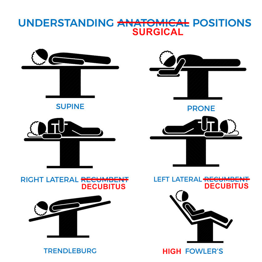 The need to generate training material forces many to copy and paste images and concepts from the Internet. Just because a concept is available on the Internet does not make it correct. In fact, there are many “reputable” websites and books that have erroneous information. Here is an example from a medical devices company that shows “anatomical positions” (there is only one anatomical position) when the image should be labeled “surgical positions”. If you click on the image you will see a larger image with corrections.